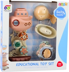 Baia poate deveni un loc de distracție incredibilă datorită acestui set acvatic, transformând fiecare baie într-o aventură de joc. Copiii pot turna apă, descoperi noi efecte și observa detaliile colorate în mișcare.