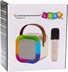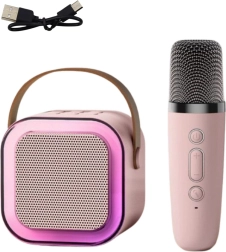 Setul cuprinde o boxă cu putere de 5W și un microfon fără fir. Boxa este dotată cu funcție Bluetooth, slot pentru carduri TF, USB, AUX, control al iluminării LED și butoane pentru reglarea volumului, selectarea modurilor și controlul redării. Sunt disponibile și moduri karaoke cu posibilitatea activării sau reducerii ecoului.