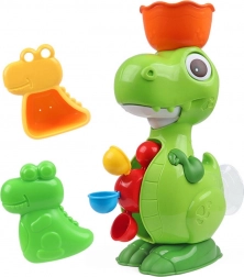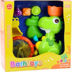 Faceți cunoștință cu dinozaurul verde, care este atracția principală a acestui set. Este însoțit de diferite accesorii colorate, precum o plasă de prins și un set de jucării plutitoare de diferite forme și texturi, pe care copiii le pot prinde și turna apă peste ele.