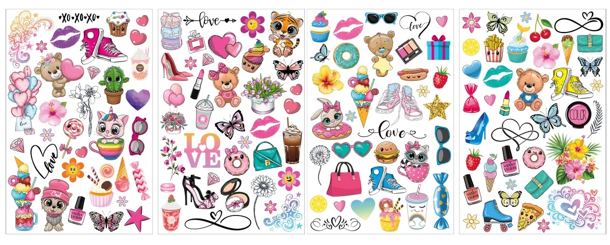 Exprimați creativitatea copiilor dumneavoastră cu acest set de tatuaje frumos. Fiecare foaie conține o gamă variată de motive diferite, pe care copiii le vor adora.
