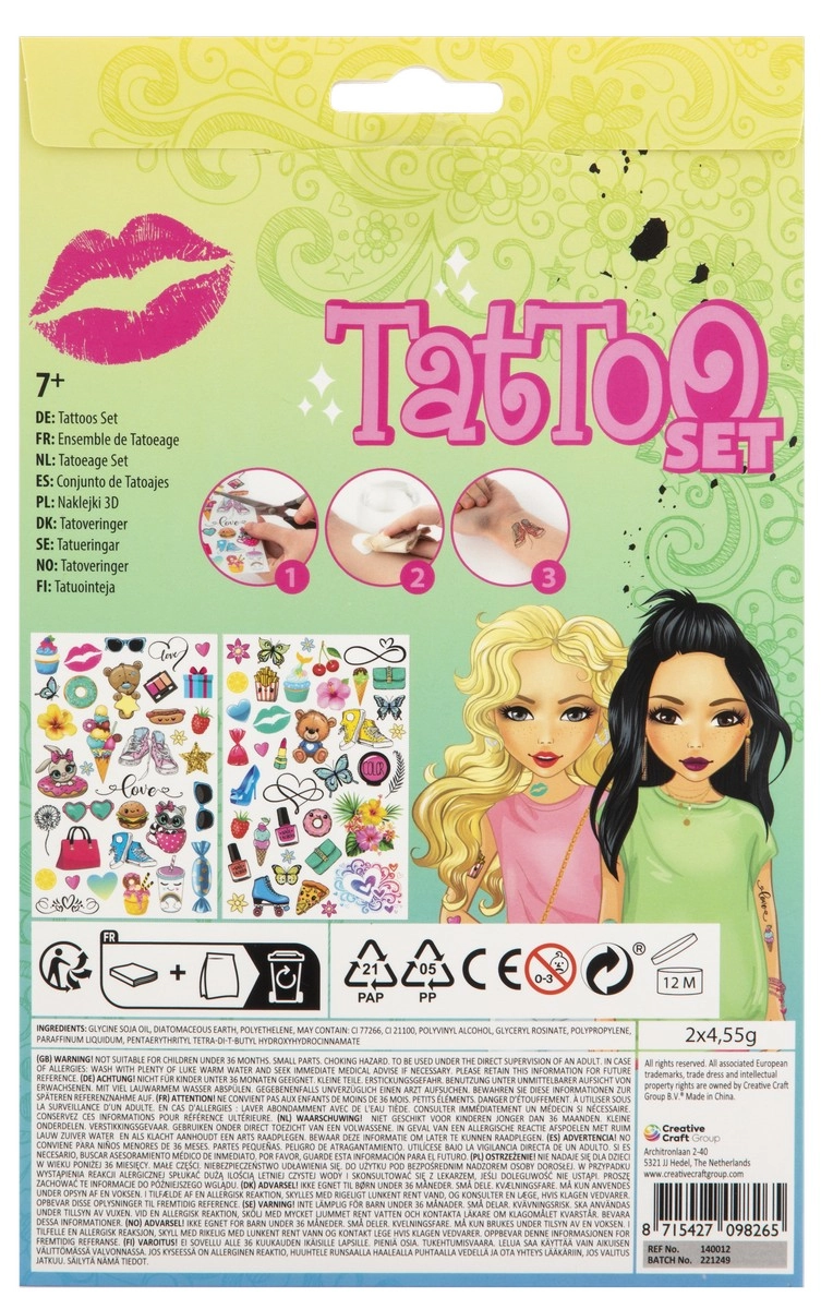 Oferiți bucurie copiilor cu acest set de tatuaje pentru copii, care conține peste 70 de tatuaje diferite pe două foi cu dimensiunile de 20x13 cm.