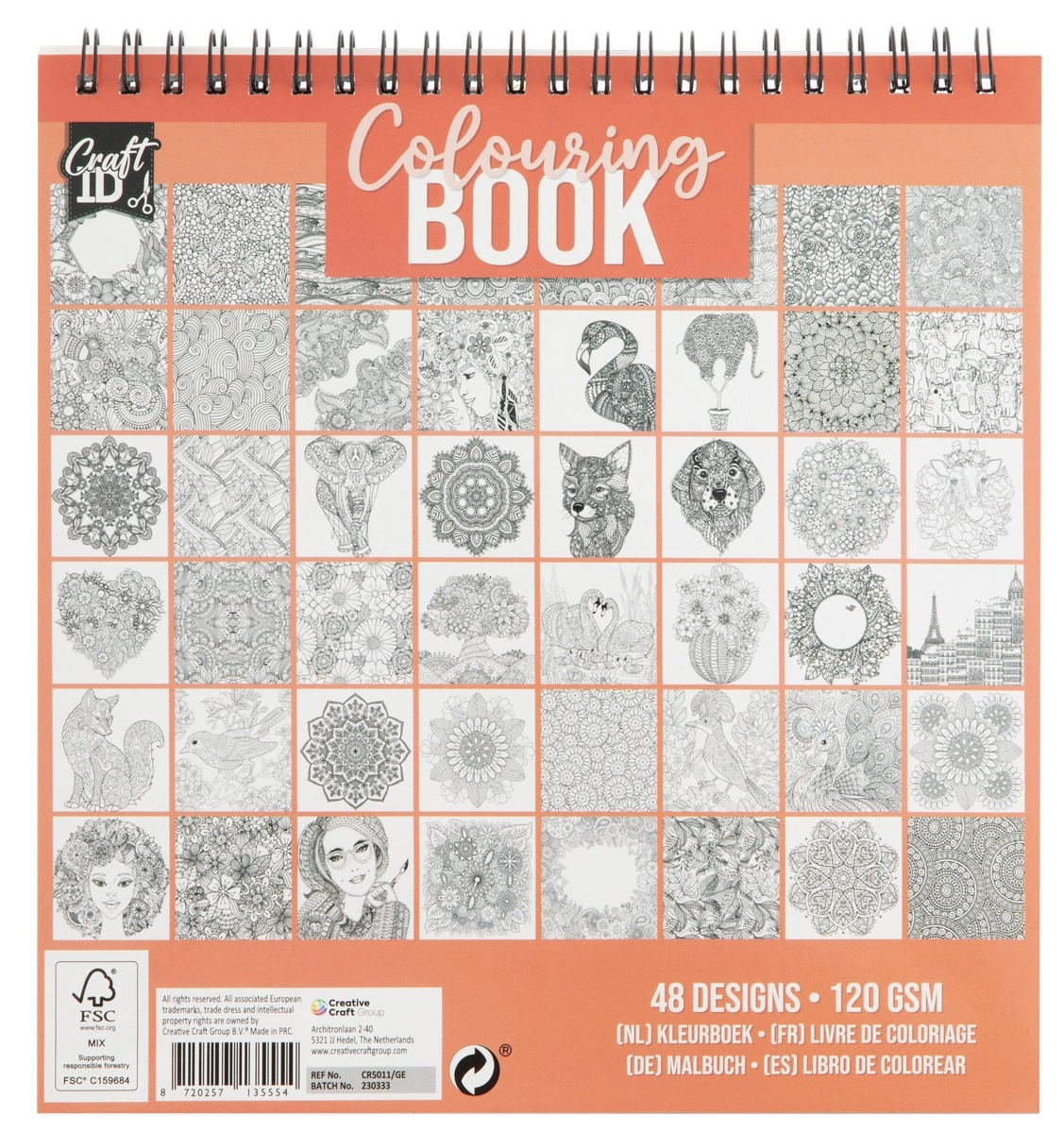 Această carte de colorat cu legătură inel are dimensiunile 21x20 cm și oferă 24 de foi cu 48 de modele pentru ore nesfârșite de distracție.