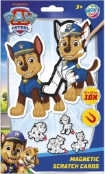 Procedeul simplu este potrivit și pentru cei mai mici: luați stiloul de răzuire, răzuiți ușor suprafețele după propria imaginație și dezvăluiți motivele colorate ale personajelor preferate din serialul Patrula Cățelușilor. Lipiți imaginile finalizate pe magneții incluși și gata.