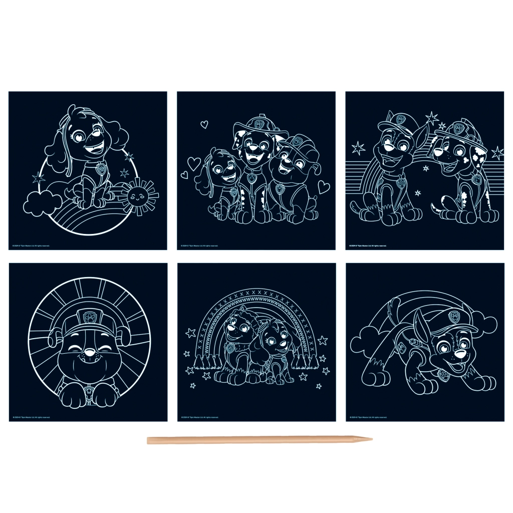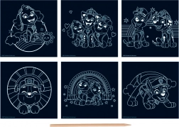 Imaginile de răzuit cu motive Paw Patrol oferă copiilor ore de distracție și bucuria de a crea. Este suficient să iei stiloul inclus, să răzuiești ușor stratul negru și să dezvălui treptat ilustrațiile pline de culoare cu eroii preferați.