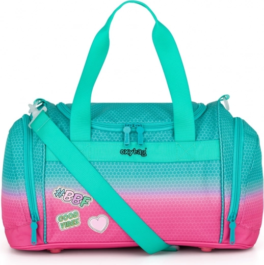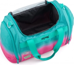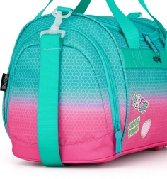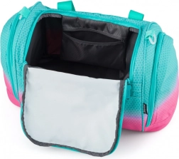Geanta se mândrește cu un design gradient care trece de la turcoaz la roz. Această combinație stilată o face nu doar practică, ci și la modă.