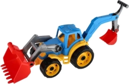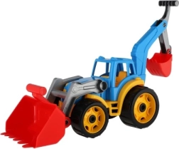 Tractorul–excavator atrage prin culorile vii și este un tovarăș grozav în grădină, în parc sau în camera copilului.