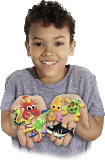 Umpleți forma, scufundați în apă activată și urmăriți cum gelul se transformă într-o figurină elastică, gata de joacă.