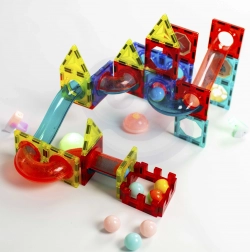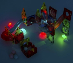 Acest set magnetic oferă o varietate bogată de piese pentru a crea construcții originale și piste dinamice pentru bile. Datorită bilelor luminoase și reflectoarelor ia naștere o pistă „strălucitoare” de mare efect, care îi captivează pe copii și prelungește timpul de joacă. Magneții puternici asigură o îmbinare fermă, astfel încât chiar și structurile 3D mai complexe rămân stabile.
