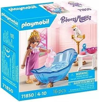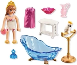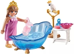 Descoperiți luxul relaxării regale cu PLAYMOBIL Baia pentru Prințese. Cada poate fi umplută cu apă, permițând o relaxare perfectă. Prințesa poartă un prosop ce poate fi ușor îndepărtat sau adăugat după nevoie. Setul include accesorii frumoase precum o coroană, un colier și altele, pentru a crea povești magice.
