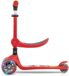 Această trotinetă combină ideal distracția cu funcționalitatea, susținând dezvoltarea fizică și coordonarea mișcărilor. Dispune de două roți din silicon iluminate în față, care asigură stabilitatea și echilibrul. Platforma antiderapantă și frâna roții din spate sporesc siguranța în timpul deplasării.