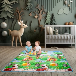 Această saltea pliabilă din spumă EPE rezistentă este ideală ca covor pentru camera copilului sau colțul de joacă. Datorită imprimării pe ambele fețe, îmbină distracția și învățarea – copiii exersează literele, cifrele și animăluțele în timp ce se joacă.
