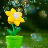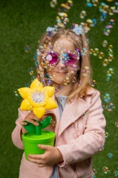 Această mașinuță de făcut bule în formă de floare transformă fiecare după-amiază în grădină într-un spectacol de poveste. Doar torni soluția, pornești și în câteva clipe apar zeci de buline sclipitoare, pe care copiii adoră să le prindă și să le urmărească. Designul compact tip ghiveci este stabil și ușor de transportat.