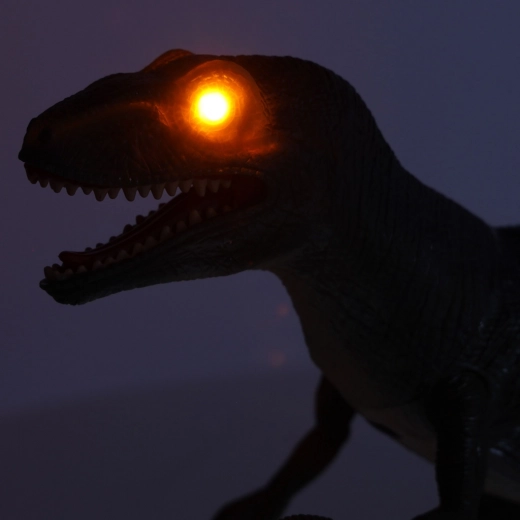 Ochi roșii luminoși și un urlet puternic transformă orice cameră într-o junglă preistorică și susțin jocul plin de suspans.