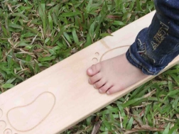 Plăcile au diverse modele, astfel încât copiii își pot întări simțul tactil. Mersul desculț pe plăci adaugă o altă dimensiune distracției. Setul conține 10 plăci diferite și componente pentru o montare simplă la înălțime.