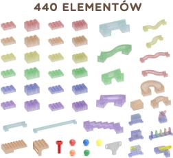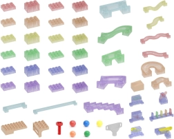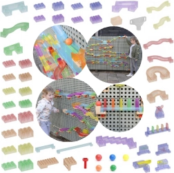 - - Cea mai bună jucărie pentru construcția unei piste pentru bile, permițând copiilor să creeze trasee și piste adăugând diferite blocuri, puncte de schimbare a direcției și alte mecanisme de mișcare.