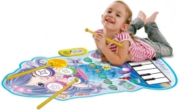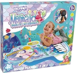 Acest covoraș muzical colorat, cu un motiv de poveste al unei sirene, îmbină claviatura cu 8 clape și paduri de tobe într-o singură suprafață de joc moale și rezistentă. Copiii pot cânta cu degetele sau cu bețele incluse, pot descoperi sunete de instrumente, porni melodii și ritmuri și își pot crea propriile compoziții.