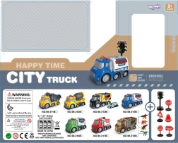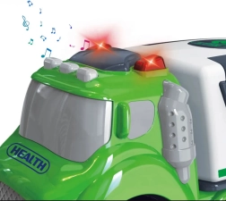 Camionul de gunoi City Truck este o jucărie perfectă pentru orice mic fan al automobilismului și vehiculelor municipale speciale. Camionul de gunoi este echipat cu efecte sonore și luminoase realiste, care se activează prin apăsarea unui buton de pe acoperișul vehiculului.