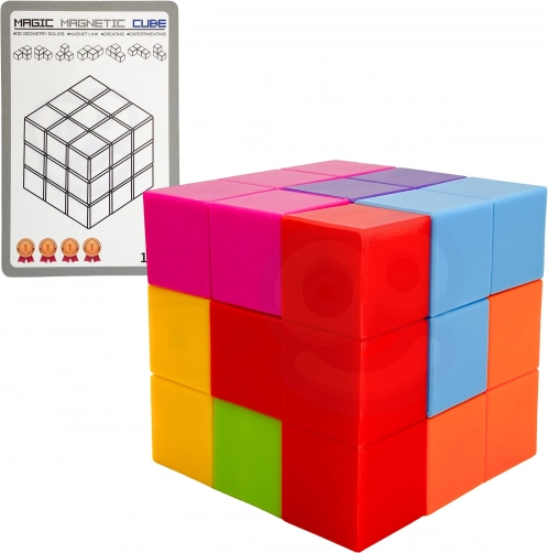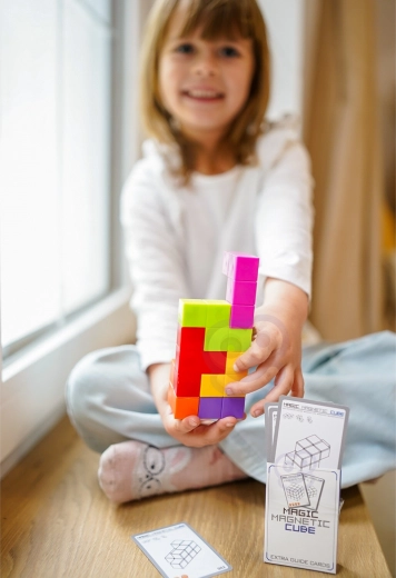 Această puzzle magnetică în stil tetris aduce zeci de provocări spațiale și posibilități nelimitate de construcție. Datorită magneților puternici, piesele se îmbină sigur, ceea ce ușurează manipularea pentru copiii de la 3 ani. Include un set de carduri cu sarcini care cresc treptat în dificultate și susțin gândirea logică, răbdarea și imaginația.