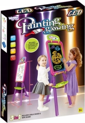 Tabla pentru copii 3‑în‑1 este ideală pentru joacă și învățare. Suprafața magnetică este grozavă pentru jocuri cu magneți și aranjarea literelor, partea whiteboard permite desen și scris cu markere, iar suprafața fluorescentă prinde viață cu desene luminoase datorită markerelor LED. O singură jucărie, trei moduri de creație – fără murdărie și mereu din nou.