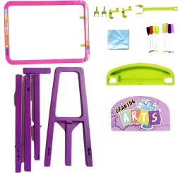 În pachet găsești 4 markere pentru whiteboard, 4 markere LED fluorescente, o lavetă de curățare și elemente de montaj. Doar asamblezi și începi să desenezi.