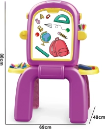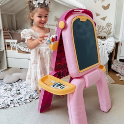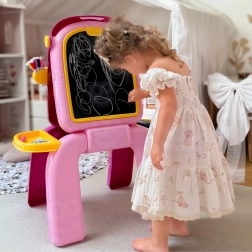 Tabla colorată pentru copii 2în1 combină o suprafață albă magnetică, uscat-ștergătoare, și o parte neagră pentru cretă, pentru creație și învățare fără limite. Datorită construcției stabile, compartimentelor laterale și setului bogat de accesorii (markere, cretă, burete, magneți) susține creativitatea, concentrarea și motricitatea fină fără ecrane – ideală pentru acasă, grădiniță și ca un cadou.