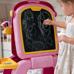 Partea albă uscat-ștergătoare și partea neagră pentru cretă le oferă copiilor libertatea de a crea, de a exersa scrisul și matematica, iar apoi de a șterge ușor și a începe din nou.