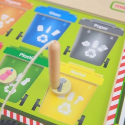 Tablă educativă din lemn de la Masterkidz, care îi învață pe copii să sorteze deșeurile cu ajutorul unui băț magnetic. Jucăria promovează învățarea distractivă și eficientă a abilităților esențiale.
