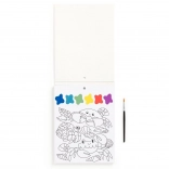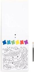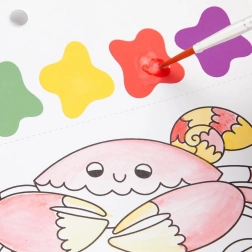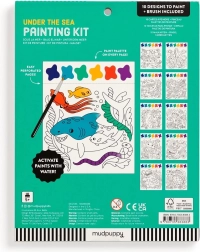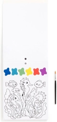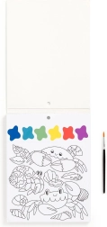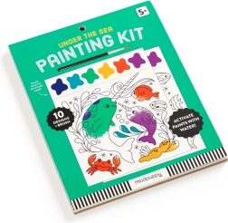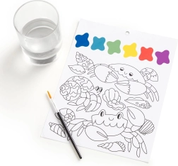 Setul de pictura include o pensulă și 10 coli pretipărite pentru colorat, fiecare cu un motiv de viață marină și o paletă de culori. Doar umeziti pensula si incepeți să creați! Fiecare coală este perforată pentru a permite separarea ușoară a imaginii finalizate.