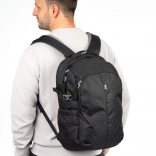 Dotările practice includ buzunar integrat pentru laptop, buzunar pentru ochelari, organizator interior cu carabinieră pentru chei și chingă pentru prindere de bagajul de călătorie. Designul atemporal în negru arată curat și modern și se potrivește elevilor mai mari, studenților și adulților.