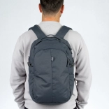 Fabricat din material hidrofug de calitate, care se usucă rapid și se curăță ușor. Construcția ergonomică, cu sarcină maximă de 7 kg, este completată de curea toracică și lombară detașabilă pentru o solicitare mai mică a spatelui. Buzunarul integrat pentru laptop și ochelari, carabiniera pentru chei și cureaua pentru fixare pe bagaj facilitează organizarea în călătorii.