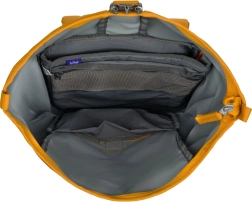 La interior găsești un spațiu bine organizat, cu un volum de 29 l, și un compartiment separat căptușit pentru laptop, cu acces lateral cu fermoar pentru acces rapid. Partea superioară rulabilă cu cataramă permite ajustarea capacității conform nevoilor curente și menține conținutul în siguranță.