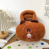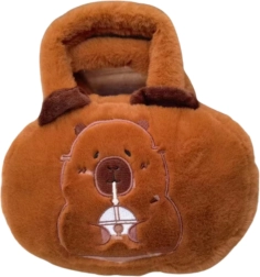 Fabricată din material pluș moale de culoare caldă maro, care îi conferă un caracter confortabil. Fața din față este împodobită cu o broderie a unei capibare care bea o băutură, un motiv simpatic care atrage atenția. Pentru o mai mare siguranță a obiectelor depozitate, geanta este dotată cu un fermoar ce protejează conținutul împotriva căderii accidentale. Mânerul confortabil și moale permite o purtare comodă în mână, iar calitatea înaltă a materialelor utilizate asigură durabilitate și confort pe termen lung.