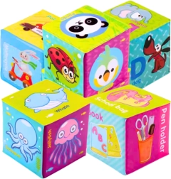 Descoperiți magia cuburilor educaționale, care nu doar ajută la dezvoltarea creativității copiilor, dar sprijină și abilitățile cognitive și învățarea limbilor. Fiecare cub este decorat cu diverse imagini - de la litere la cifre și imagini cu denumiri în engleză.