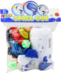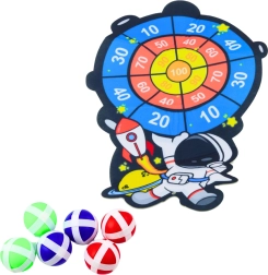Pistolul în formă de navă spațială este realizat dintr-un material durabil și permite întinderea ușoară a mecanismului cu arc pentru o tragere precisă. Cele șase mingi incluse cu arici aderă ușor la tablă, facilitând calcularea punctajului. Cârligul de montaj rapid pentru agățat pe perete, ușă sau tablă împreună cu ambalajul convenabil din folie permite depozitarea și transportul facil.