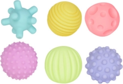 În ambalaj veți găsi 6 bile colorate și moi, fiecare cu texturi și forme diferite, incluzând suprafețe cu protuberanțe, caneluri, elemente netede și cu țepi. Această diversitate asigură stimulări tactile variate. Copiii învață prin joc să distingă formele, structurile și culorile, ceea ce contribuie pozitiv la dezvoltarea lor cognitivă.