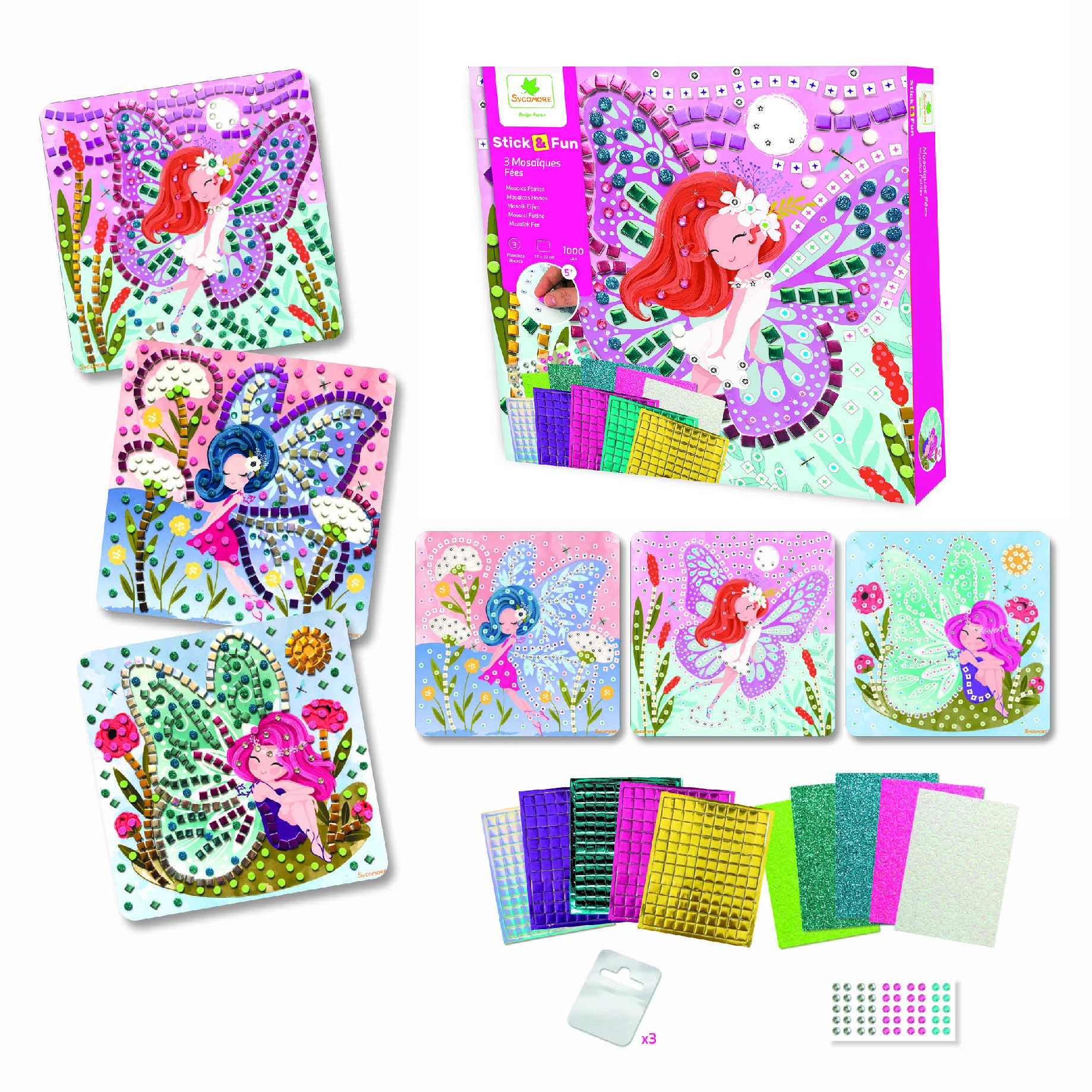 Copiii vor fi entuziasmați când vor putea crea propriile imagini mozaic magnifice cu zâne. Cu ajutorul pietrelor autoadezive și a pieselor sclipitoare de mozaic vor finaliza fiecare imagine, care va străluci cu propria-i strălucire unică. La final, copiii își pot expune mândri lucrările folosind agățătorile transparente incluse.
