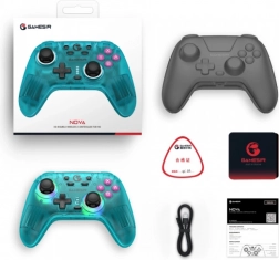Controllerul multiplatformă GameSir Nova în culoarea Neon Teal oferă joystick-uri Hall Effect precise, fără drift, conectivitate în trei moduri (Bluetooth, dongle 2,4 GHz, USB‑C) și compatibilitate largă cu dispozitivele SWITCH, PC, iOS și Android. Bucură-te de inele RGB, vibrații duale, control prin mișcare și butoane programabile pe spate pentru performanță maximă.