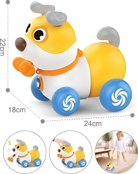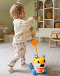 Folosește-l ca jucărie de împins cu tijă lungă sau ca cățeluș de tras cu lesă. Excelent pentru dezvoltarea mersului și coordonării.