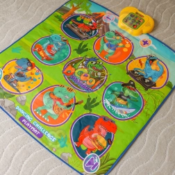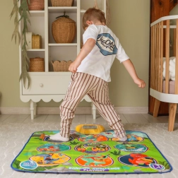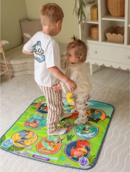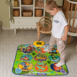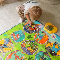 Acest covoraș de dans vesel, cu dinozauri, îi motivează pe copii la mișcare și învățare interactivă. Cele nouă zone mari, colorate, reacționează la atingere, iar ghidarea pașilor este asigurată de modulul de control, care sprijină într-un mod distractiv abilitățile de coordonare, simțul ritmului și percepția auditivă. Construcția moale este plăcută la călcare și sigură pentru joaca de zi cu zi.