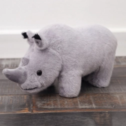 Rinocerul de pluș cu lungimea de 30 cm este fabricat din material pluș importat de calitate, asigurând o senzație unică la atingere. Datorită detaliilor fine cu coarne caracteristice, urechi cu vârfuri negre și ochi prietenoși, arată ca un rinocer adevărat, devenind astfel un tovarăș excelent pentru copiii tăi.