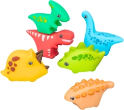Fiecare dinozaur are o deschidere cu fluier la bază – când este strâns, scoate un sunet distractiv, adăugând atractivitate jocului și susținând dezvoltarea auzului și coordonării mână-ochi. Jucăriile sunt excelente nu doar în baie, ci și pe uscat – de exemplu, în timpul jocului pe covoraș.