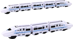 Trenul nostru interactiv este inspirat de trenurile de mare viteză din China, având ferestre negre, benzi albastre și caractere chinezești pe corp pentru un aspect realist. Este o jucărie cu funcție "bump i go" care permite ca trenul să își schimbe automat direcția dacă întâlnește un obstacol.
