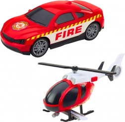 Setul de pompieri este destinat copiilor care adoră vehiculele de salvare. Setul include un camion mare de tip cap tractor, o mașină de salvare roșie și un elicopter. Toate piesele au o culoare caracteristică roșu-galbenă și un design inspirat de brigada de pompieri.