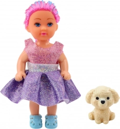 Fiecare păpușă are ochi albaștri, pantofi albaștri și un cățeluș alb de 3 cm ca cel mai bun prieten. Cu diversele coafuri, copiii pot experimenta coafarea și crearea propriilor stiluri de păr.