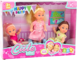 Acest set de trei păpuși mini este ideal pentru jocuri creative și dezvoltarea imaginației copiilor. Păpușile au fost proiectate cu atenție la detalii – de la culorile unice ale părului, prin rochii ornamentale, până la pantofi albaștri perfect asortați. Sunt pregătite pentru petrecerea de aniversare, ceea ce inspiră copiii să joace roluri și să se distreze cu prietenii.
