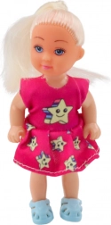 - Păpușă cu părul blond deschis în rochie roz închis cu stele