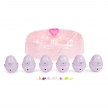 Pune oul în cuib, umple inimioara cu apă și urmărește cum, în câteva secunde, figurinele eclozează, iar apa capătă nuanțe curcubeu.