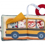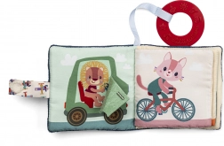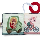 Cartea textilă cu motivul cățelușului Jules oferă micului tău o mulțime de distracție. Datorită cataramei cu velcro, poate fi ușor atașată de cărucior sau pătuț, ceea ce ușurează manipularea și depozitarea. Cartea stimulează vederea, auzul și include un inel de dentiție cusut, care ușurează durerile de gingii ale copiilor la erupția primilor dinți. Cartea nu conține text, dar prin ilustrațiile vesele încurajează povestirea unor povești simple.