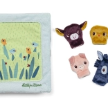 Cartea textilă Lilliputiens oferă distracție la fermă cu marionete pentru degete incluse, cu viţel, puișor, mielușel, purcel și măgăruș cu scai. Aceste marionete pot fi mutate după plac, iar copilul își dezvoltă astfel îndemânarea și creativitatea.