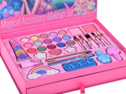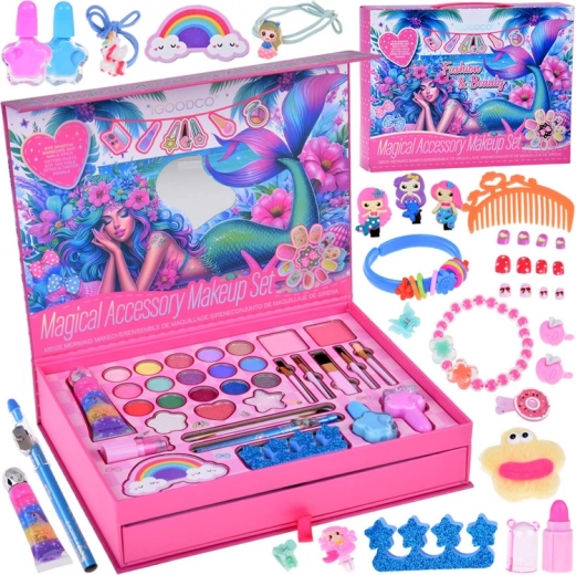 La deschidere se întâmplă un miracol! Dar nu te stresa - în sens pozitiv! :) Înăuntru găsești împlinirea viselor fiecărei iubitoare de machiaj! În plus, valiza conține un sertar plin cu accesorii de păr și bijuterii. Aproape fiecare articol are un motiv de sirenă sau un element asociat cu o lume dulce și feminină.